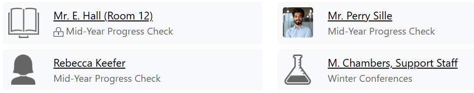 - A teacher does not have a profile picture and no individual schedule icon is selected or
